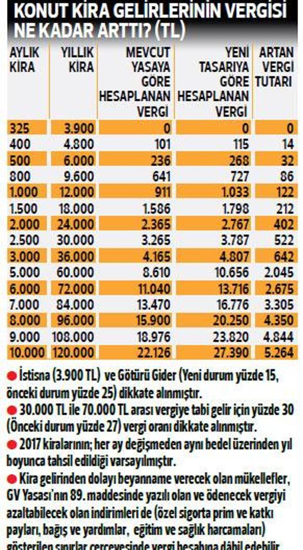 Ev kira vergisi. Yapılan değişiklikle bu süre 180 hatta bazı bankalarda 240 aya kadar çıkabiliyor. Mortgage düzenlemesi sonrasında ev kredisi oranları da eskiye oranla daha düşük seviyelerde seyretmektedir. Kira geliri uyarısı yasa teklifine göre ev sahiplerine yönelik matrah alt sınırı 2017 yılı için 9 bin 960 lira 2018 yılı için 10 bin 580 2019 yılı için 11 bin 240 lira ve 2020 yılı için de 12 bin 740 liradan az olamayacak. 18 ocak 2019 tarihinde resmi gazetede yayımlanan kanun değişikliği ile kira sözleşmesi yenilemesinde en fazla yapılabilecek zam oranı tüfe 12 aylık ortalama olarak değiştirildi.