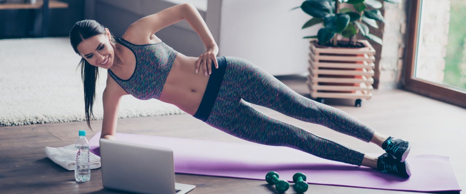 laptop and video of girl exercising at home online videos of sports and fitness workouts workouts at home online education stock vector illustration of pose interior 210229421